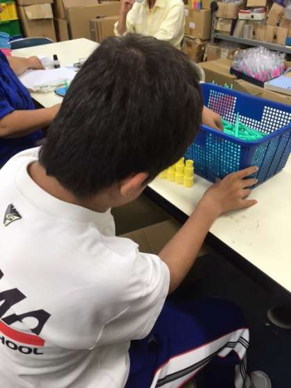 下 「生野障害者福祉作業センター」 おもちゃやタオルの袋詰めをしました。