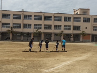 ラグビー部は練習が終われば、みんなでグラウンドの整備です。