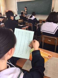 「不規則動詞活用表」を先生のあとに続いて、読みました。