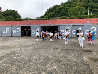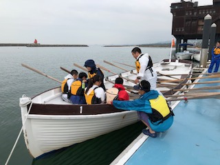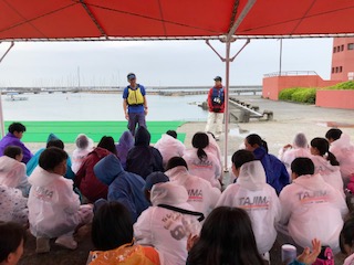 救命胴衣を着て乗船です。