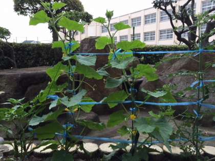 学校のひまわり農園が順調に育っています。
