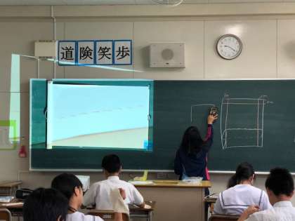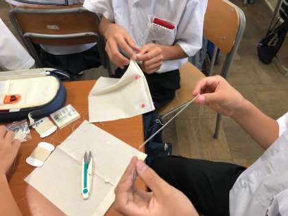 プロジェクタを使って、まつり縫いの説明した後に実習しました。