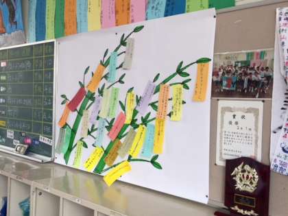 2年の教室に素敵な七夕の短冊がありました。
