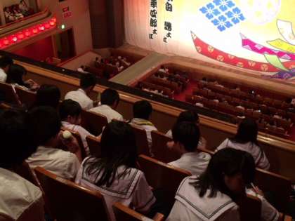 隣に座っておられた一般のお客様に「良い生徒さんたちですね。」と褒めていただきました。