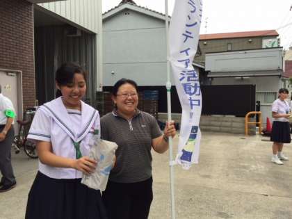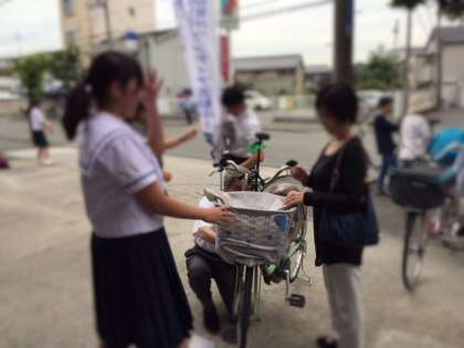 生徒会の役員のが生野ジュニア防犯ボランティアとして「ひったくり防止活動」に先生方も一緒に参加しました。