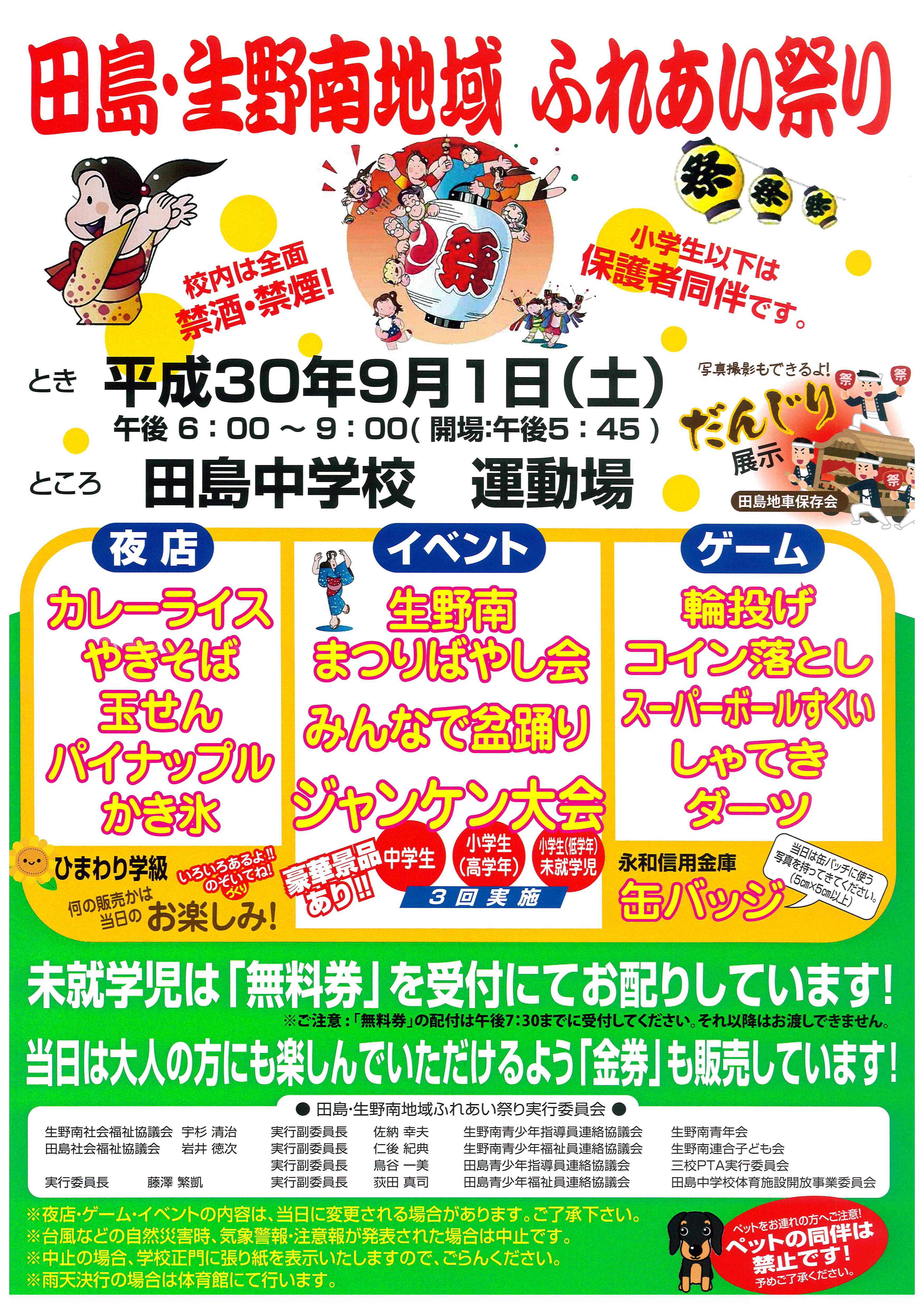 田島・生野南地域 ふれあい祭り お知らせ 8月3日(金)