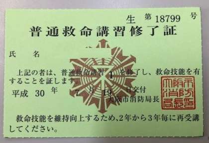 ・夏休みに学校で行った救急救命講習会に参加してくれた人に受講証明書が届きましたので、配付しました。
