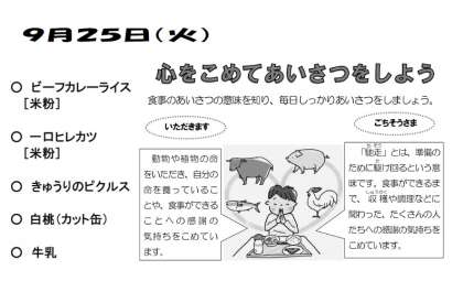 本日の給食 9月25日(火)
