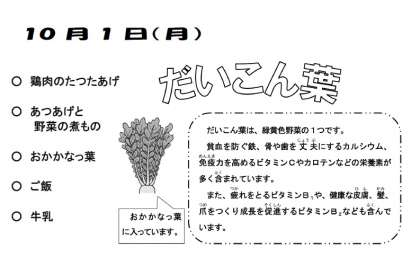 本日の給食 10月1日(月)