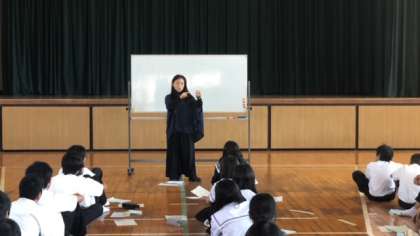 劇団四季出身の石倉康子さんを講師にお招きして、声を出すためのストレッチや日本語の仕組みについて学習しました。