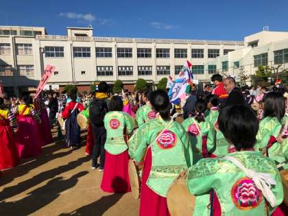 舎利寺小学校から桃谷高校までパレードを行いました。