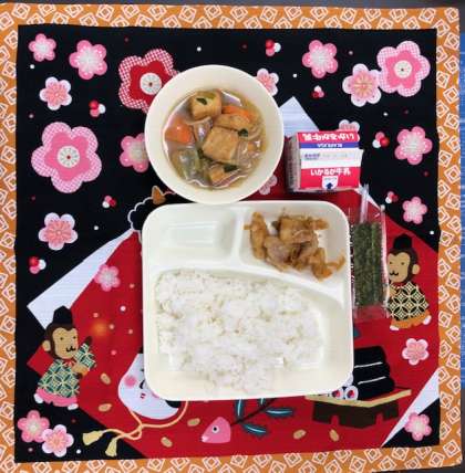 あげ鶏のねぎソースかけ、あつあげとはくさいの中華煮、焼きのり、米飯、牛乳