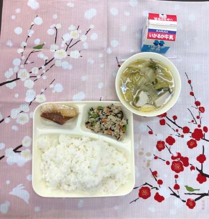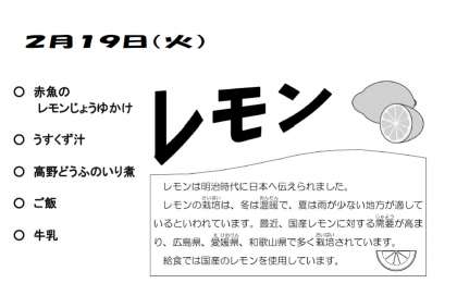 赤魚のレモンじょうゆかけ、うすくず汁、高野どうふのいり煮、米飯、牛乳