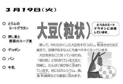とうふのミートグラタン、押し麦と野菜のスープ煮、デコポン、パン、牛乳