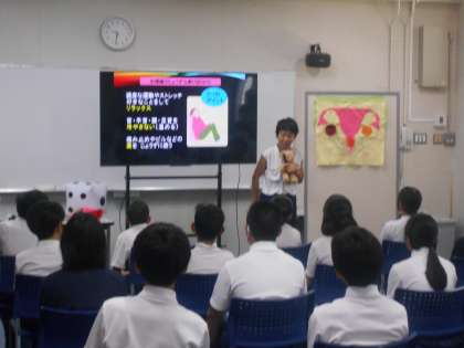 9年生はNPO法人の方をお招きして、命の誕生について学びました。