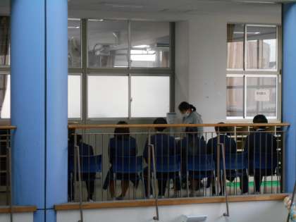 面接会場の前の待機場所では、入室の仕方が最終的に確認されました。