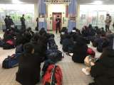 生徒集会では、明日から3年生が広島に修学旅行へ行くので、在校生がお見送りの気持...