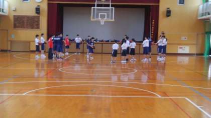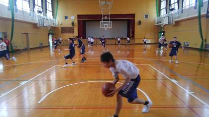 5月6日(月)、男子バスケットボール部の練習の一コマ。オフェンスでのターンの練習です。