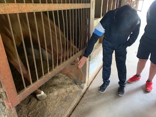 乗馬体験です。馬に乗ったり、触らせてもらったりしています。
