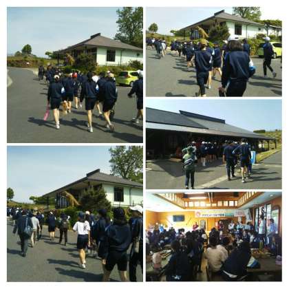 潮風の丘とまりに到着しました。班に分かれてグラウンドゴルフをします。全体でルールの説明をしていただきました。さあ、スタートです。