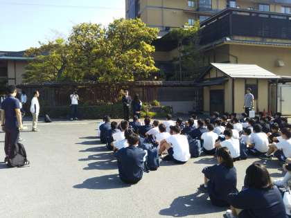 素晴らしい天気のなか退館式を行いました。一日お世話になった千年亭に別れを告げて、鳥取砂丘へ向かいます。
