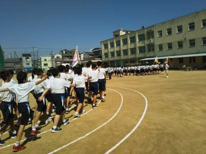 体育大会に向け、今日は全学年の学年練習を行っています。写真は1年生の練習風景です。
