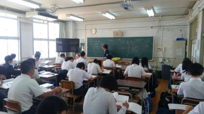 この日の数学の時間は、平方根についての学習です。根号の中の数をできるだけ簡単にすることができることをねらいとした授業です。
