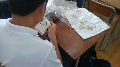 テスト返却の後、刺しゅうの実習を行いました。どんな作品ができるか楽しみです。