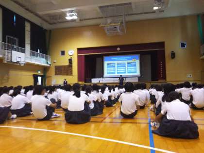 9日、生野署少年係の方に来ていただいて、夏休み前防犯教室を実施しました。薬物のこと、SNSのことなど多岐にわたって話を伺いました。生徒たちは真剣に話を聞くことができていました。