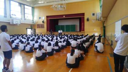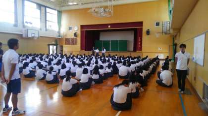 吹奏楽部、ラグビー部、陸上競技部の表彰伝達です。