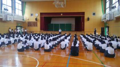 毎週月曜日は、全校集会の日です。8時25分には集合・整列完了し、話を聴くことができる状態です。毎回、感心します。
