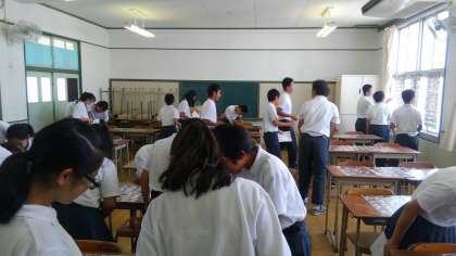 1年生は7月に行われた一泊移住の写真の見学をしました。