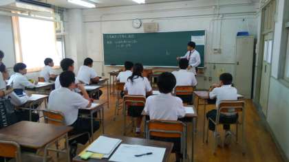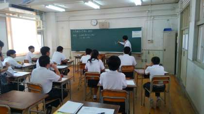 本日6限、3年生は高校の先生を講師に招いて「出前授業」を行いました。