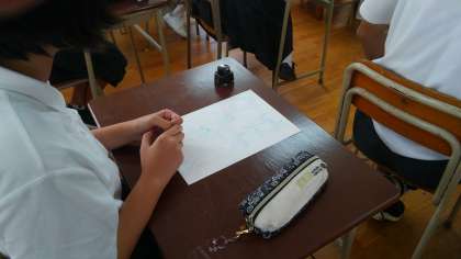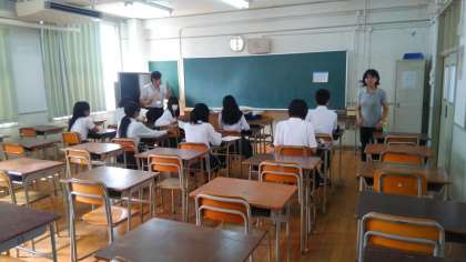 本日6限、3年生は高校の先生を講師に招いて「出前授業」を行いました。