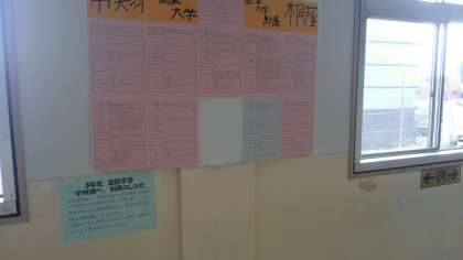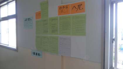 3年生は進路学習の一つとして学校調べを行いました。学校についていろいろ調べ、廊下に掲示して、みんなが見れるようにしています。