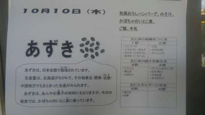 あずきは、あんやお菓子の材料にもなりますが、今日の給食では、かぼちゃのいとこ煮に使っています。