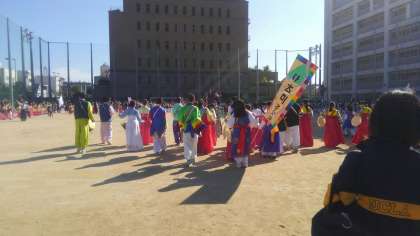 11月2日(土)舎利寺小学校と桃谷高校の2会場で、東部子ども民族文化祭が行われました。本校からは、ウリ文化部で活動している生徒たちが参加しました。