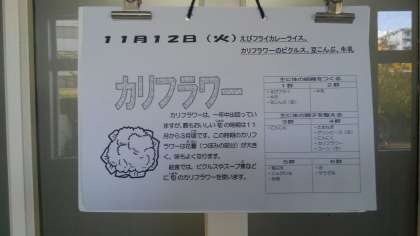 給食では、ピクルスやスープ煮などに旬のカリフラワーを使います。