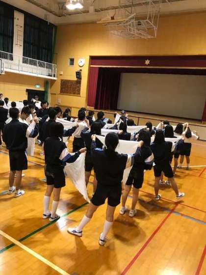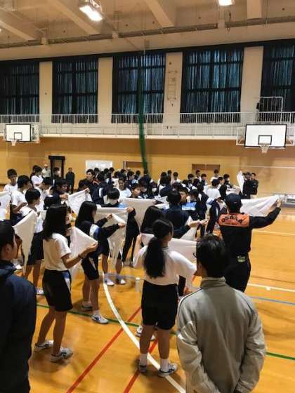 3年生は日用品を使っての応急処置について、布やビニール袋を使って対応する方法を学習しました。