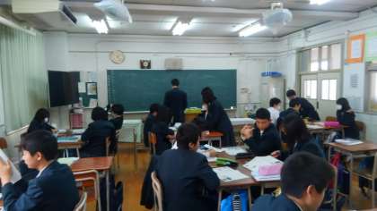 ピラミッドの高さを相似比を使って求める課題に対して、グループで挑んでいます。なかなか難しかったです。