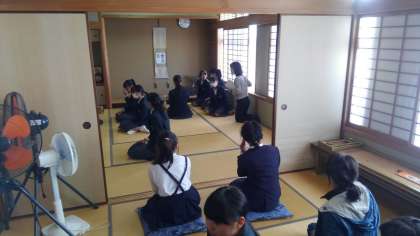 茶道・家庭科部と吹奏楽部の様子です。緊張しながらも、頑張っています。