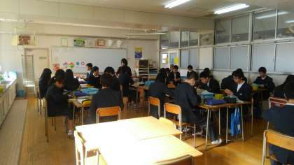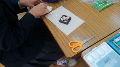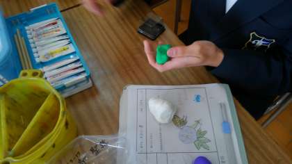 3年美術の授業の様子です。紙粘土を使って「和菓子」の制作をしています。
