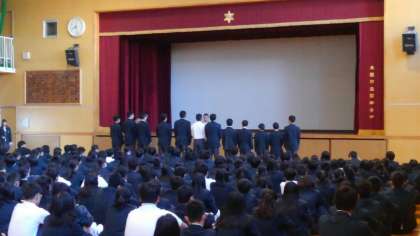 男子バスケットボール部と吹奏楽部の賞状伝達がありました。