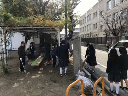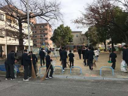 12月24日(火)の放課後、「地域ボランティア清掃」が行われました。本校の生徒だけではなく、保護者、地域の方々、本校の近くにある日生日本語学園の生徒も参加し、300人近くの参加になりました。