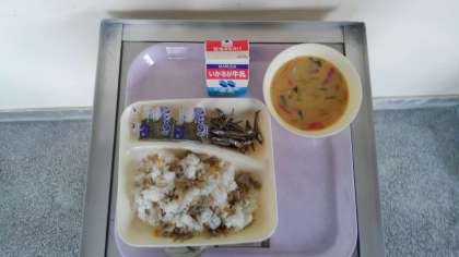 れんこんのちらしずし、ぞう煮、ごまめ、牛乳
