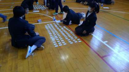 2年生は体育館で百人一首大会を行いました。