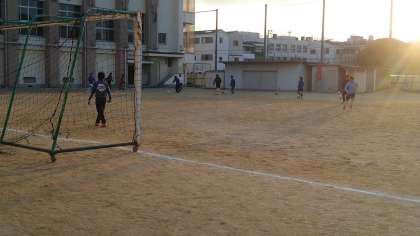 サッカー部の活動の様子です。3校が集まって練習しています。