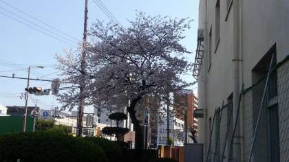 新入生をお祝いしているかのように、桜の花も咲き誇っています。