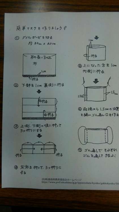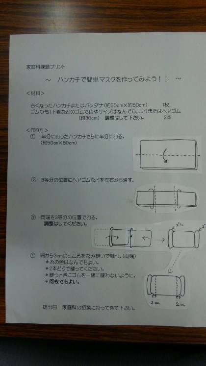手作りマスクの作り方です。下のバナーをクリックしてください。