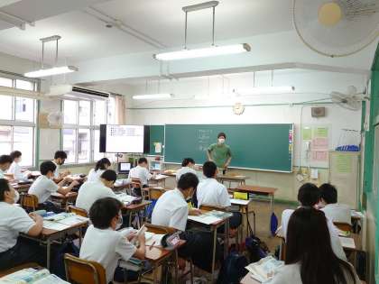 理科では、鉄と硫黄の混合物の加熱を通して、化学変化について学習しています。英語では、look+形容詞、be動詞について学習しています。社会は日本の地理について学習しています。